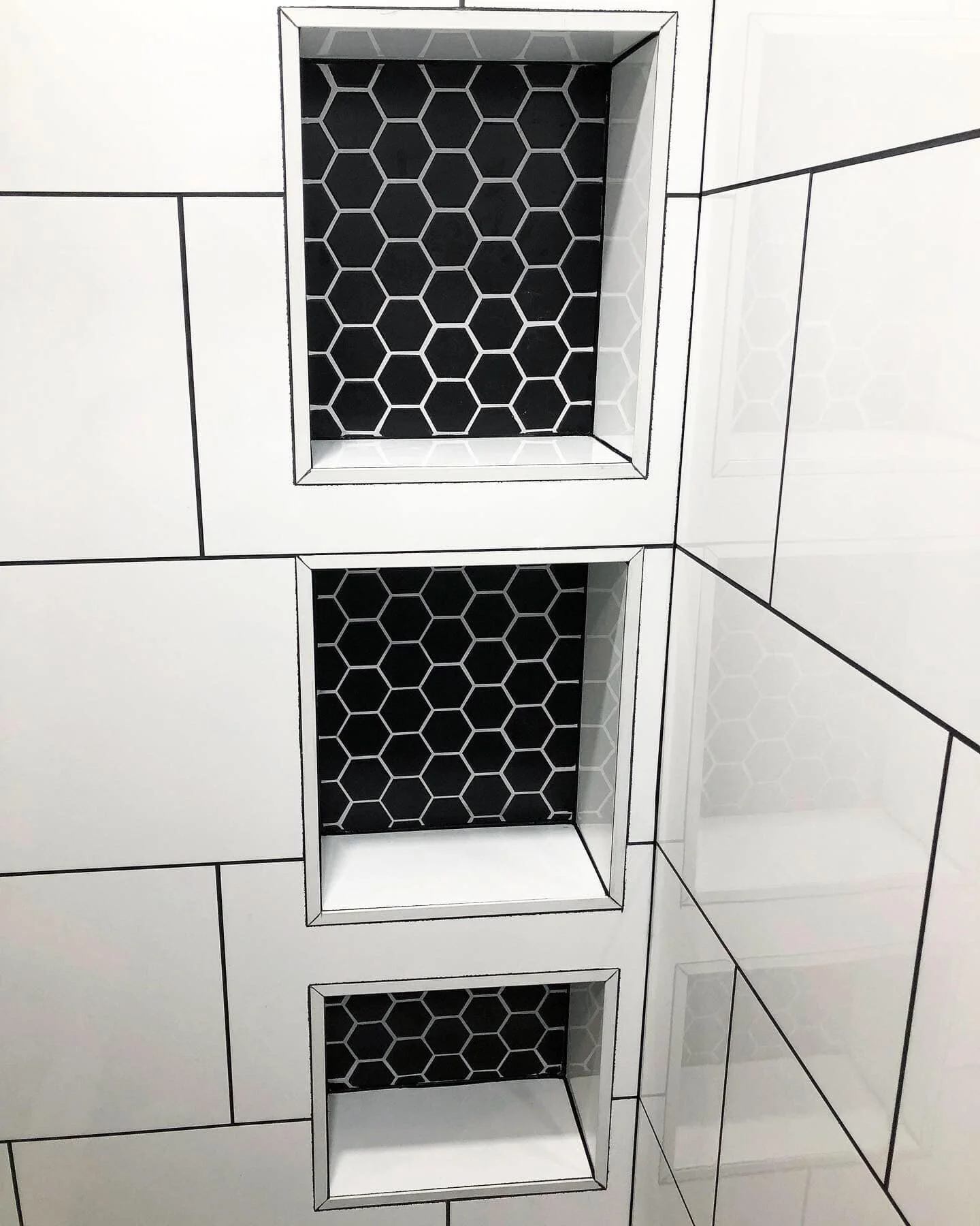 Such a classic! The picture frame niche is great for those who crave simplicity with a little flare. While it does not provide as much storage as the linear or double stacked niche, the picture frame is the perfect option for those with little shower supplies.